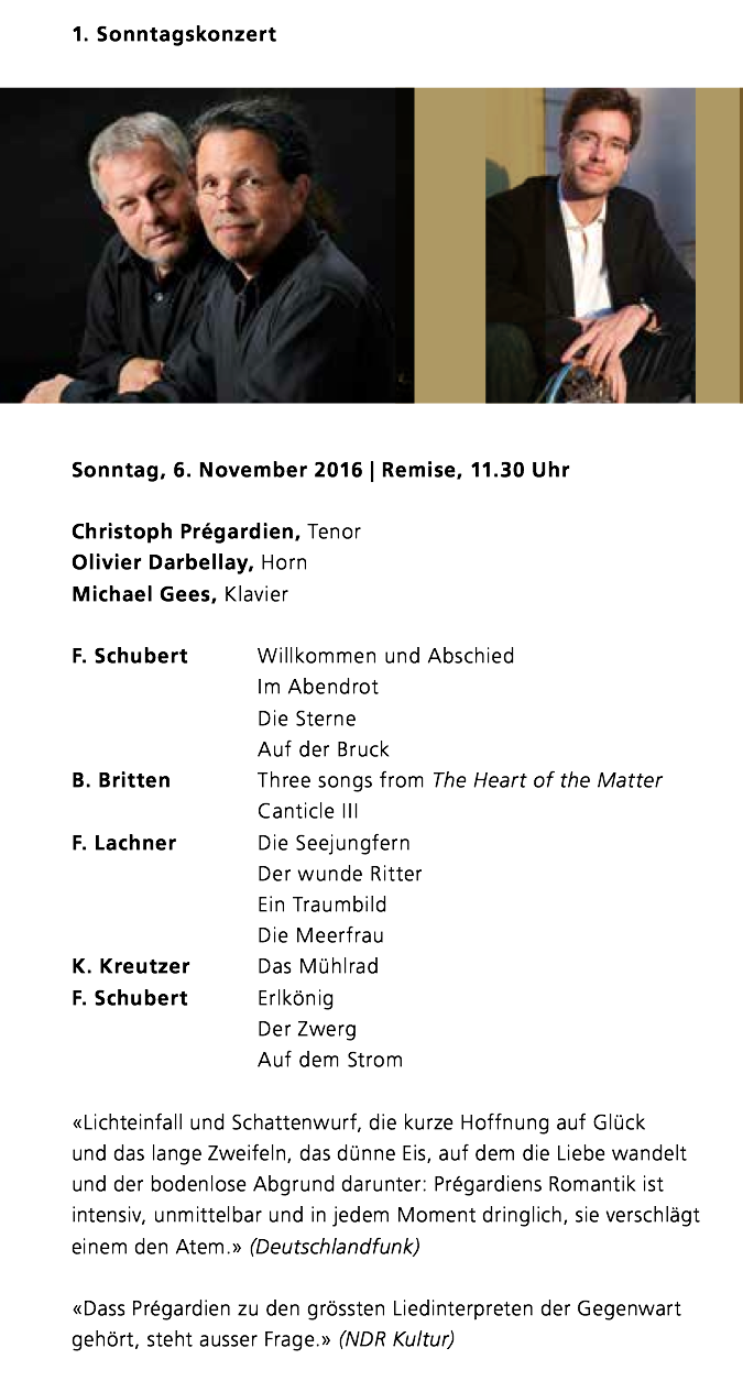 Trio-Konzert mit Michael Gees, Klavier und Olivier Darbellay, Horn